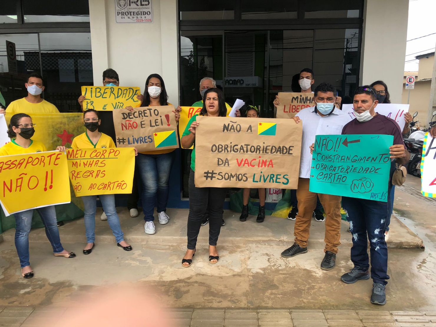 Os manifestantes levaram cartazes com frases “Não a obrigatoriedade da Vacina”, “liberdade ir e vir” e dentre outras.