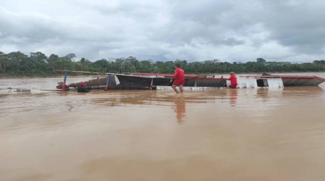 Bombeiros recuperam barco naufragado no rio Juruá