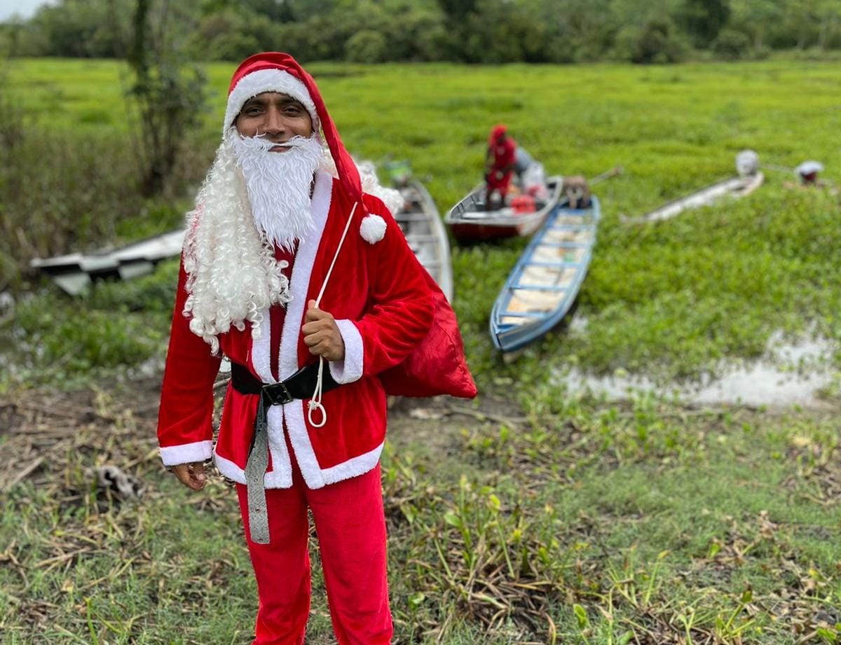 Em Cruzeiro do Sul, Papai Noel distribui presentes em comunidades ribeirinhas