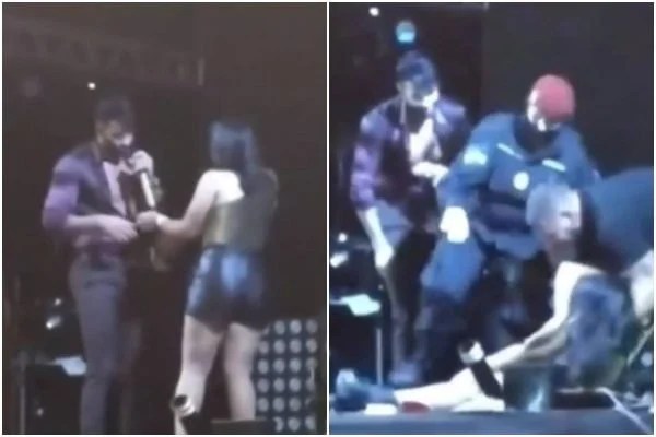 Nas imagens, que viralizaram nas redes sociais, a fã consegue subir no palco e ficar na frente do cantor.