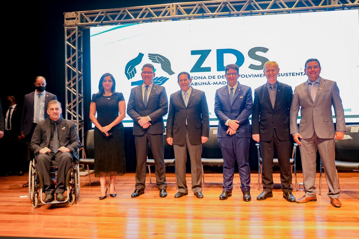 Os estados do Acre, Amazonas e Rondônia selaram um acordo histórico em prol do desenvolvimento socioeconômico sustentável da Amazônia Ocidental. No palco do Teatro Guaporé, em Porto Velho (RO), os governadores Gladson Cameli e Marcos Rocha, juntamente com o vice-presidente da República, Hamilton Mourão, oficializaram a criação da Zona de Desenvolvimento Sustentável Abunã-Madeira, nesta terça-feira, 14.