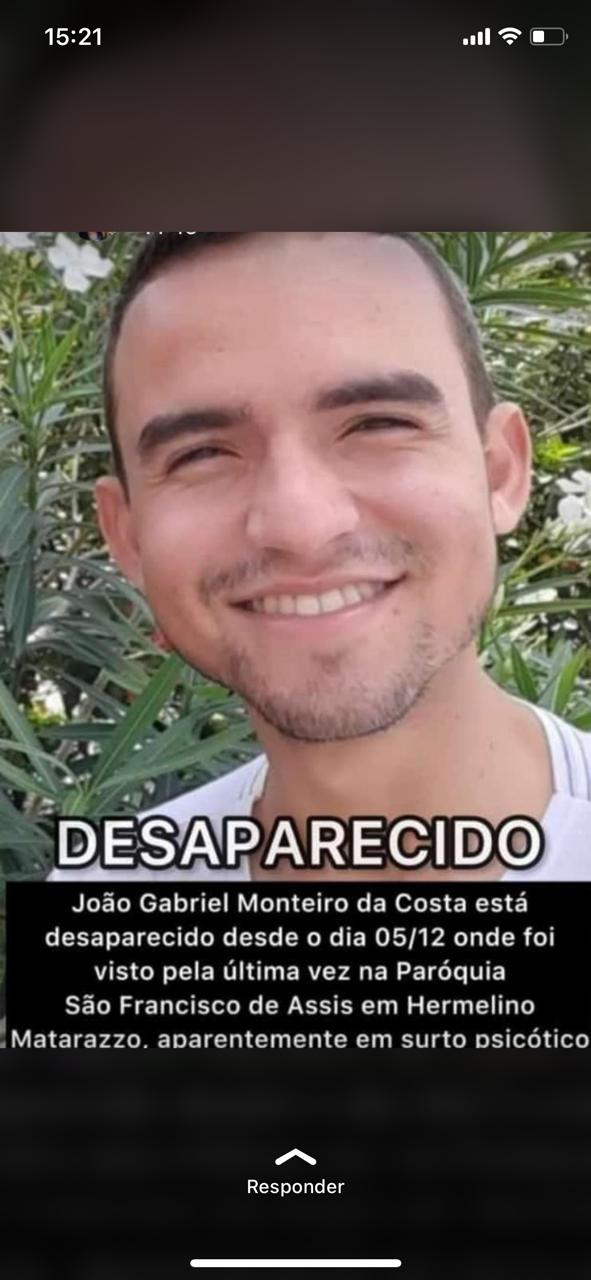 Gabriel havia ido morar em São Paulo, para estudar o curso de Direito, e no dia 5 de dezembro, teria sofrido o surto, achando que estava sendo perseguido por pessoas que queriam tirar sua vida. Familiares e amigos do jovem utilizam as redes sociais em busca do paradeiro do rapaz.