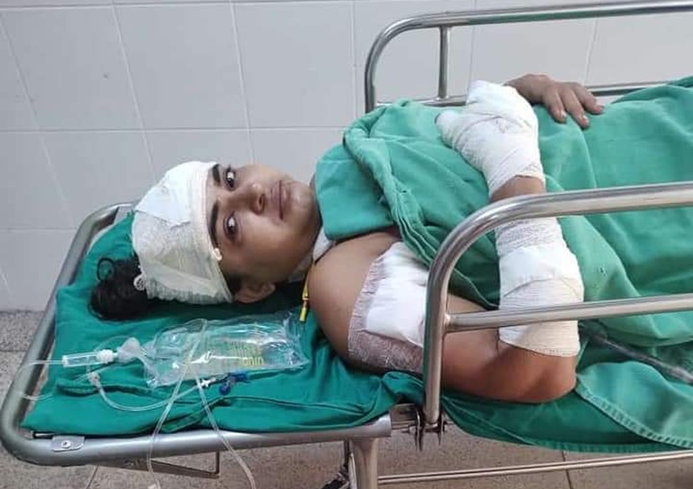 Após a agressão, Fernanda foi levada para o Pronto Socorro de Rio Branco por moradores do bairro. Ela passou por cirurgia e ficou oito dias internada na unidade.Fernanda Neiva se recupera em casa após oito dias internada no PS  — Foto: Arquivo pessoal