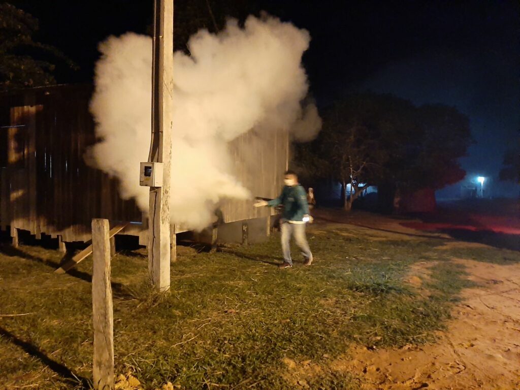 A Gerência de Endemias já realizou o serviço de borrifação nas casas dos moradores, o fumasse na parte noturna é realizado em três círculos, três dias de fumaça direto e cinco dias sem. A busca ativa com laminas é realizado nos moradores, assim que um sintoma é identificado.