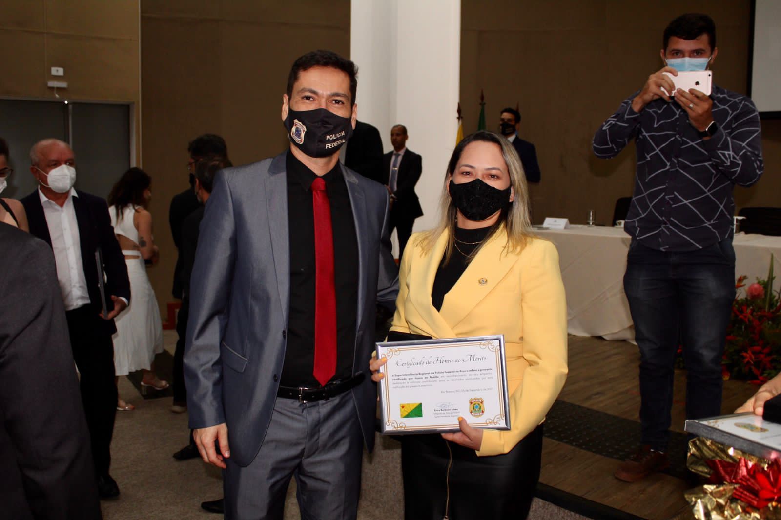 Além da chefe do Detran, outras personalidades receberam a justa homenagem. O governador Gladson Cameli, foi um dos principais homenageados e ocupou posição de honra durante cerimônia realizada no auditório da sede da Polícia Federal, em Rio Branco.