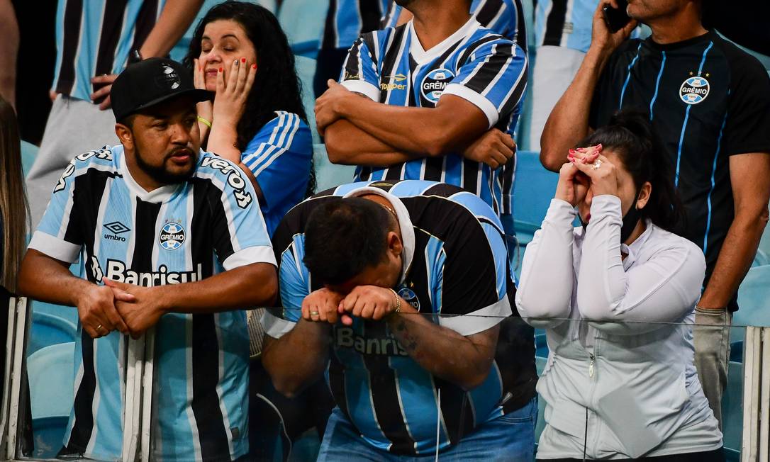 Torcida do Grêmio lamenta o rebaixamento do clube para a Série B — Foto: Eduardo Moura