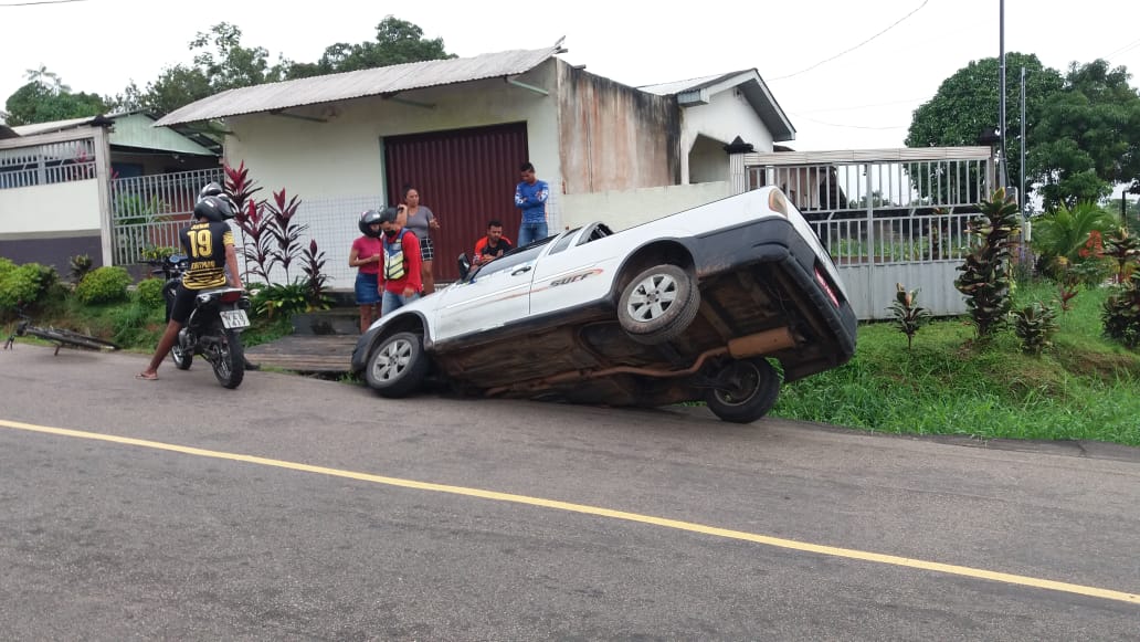 Um acidente de trânsito foi registrado no início da manhã desta quarta-feira (30), na rua Goiás, no bairro Remanso, em Cruzeiro do Sul (AC). Um veículo na cor branca, modelo Saveiro, acabou caindo parcialmente dentro de um buraco.