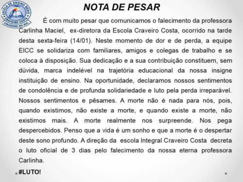 A Escola de Ensino Integral Craveiro Costa se pronunciou através de nota. Acompanhe: