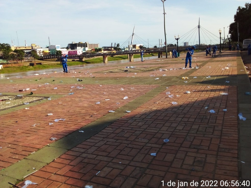 A queima de fogos promovida pela Prefeitura de Rio Branco e pelo governo do Acre, mesmo sem festa, reuniu centenas de pessoas na área central da capital acreana no réveillon 2022. Após o fim das celebrações, as equipes de limpeza começaram a recolher o lixo e entulhos deixados pelos moradores.