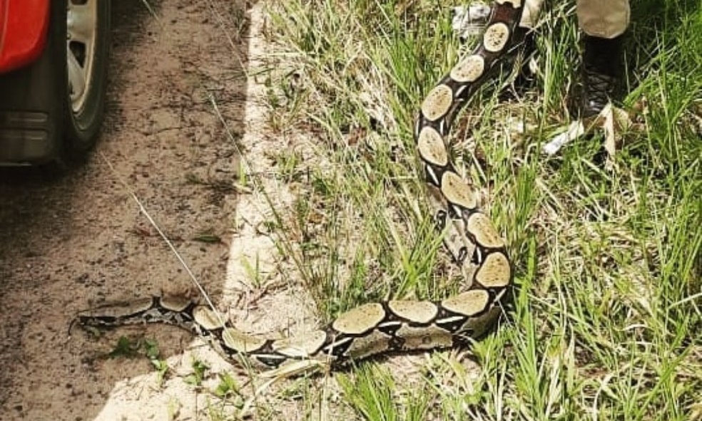 Uma equipe do 7º Batalhão do Corpo de Bombeiros foi até o local. Segundo os bombeiros, a cobra tinha 2,5 metros e foi levada para o habitat natural.