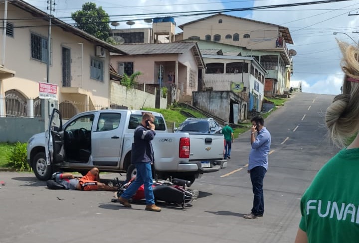 O acidente entre uma motocicleta modelo Honda, Titan 160 e uma caminhonete, S10, aconteceu no início da tarde desta terça-feira (18), no cruzamento das ruas Rego Barros com Floriano Peixoto, centro de Cruzeiro do Sul (AC), próximo a Delegacia de Polícia.