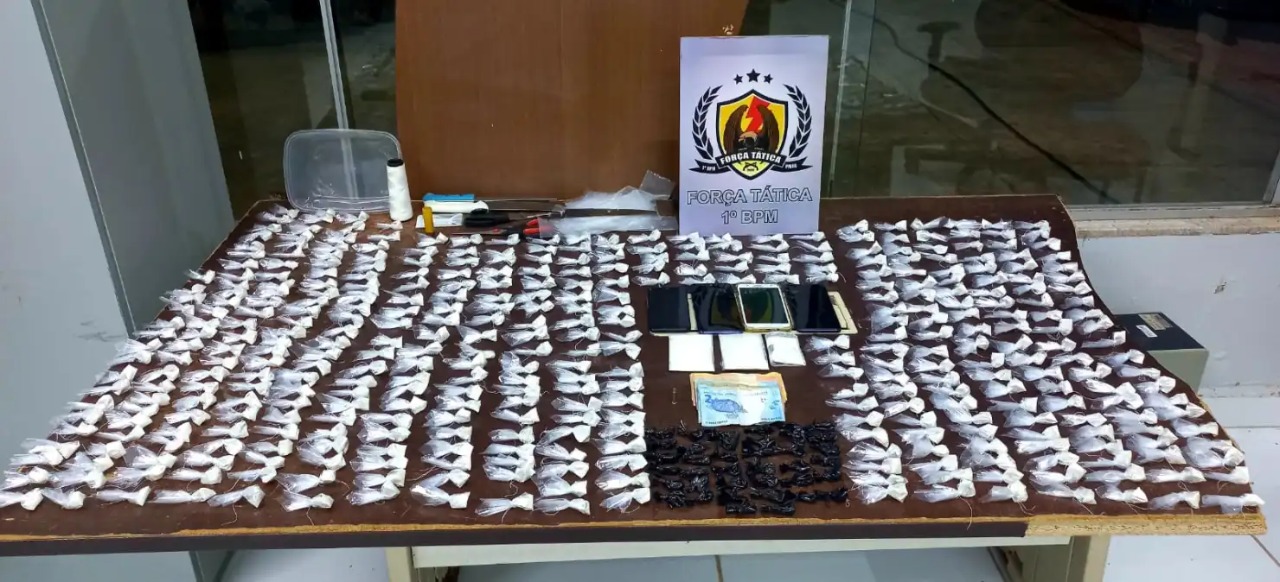 Ao todo foram localizados 397 papelotes de “merla”, 38 trouxinhas de cocaína, uma munição calibre 22, um cartucho deflagrado calibre 20, e vários materiais para produção e embalo das drogas e quatro celulares. Diante dos fatos a mulher foi encaminhada para a Delegacia de Flagrantes (Defla), e apresentada ao delegado plantonista.