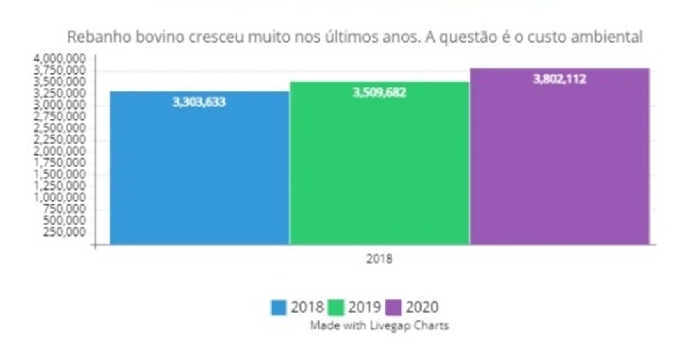 De acordo com estudo, o rebanho acreano é o 4° maior da Amazônia. No ano de 2021, o estado chegou a figurar no terceiro lugar no ranking dos estados que mais destruíram a Amazônia no ano passado.
