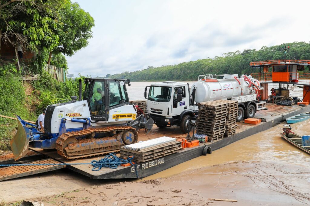 Uma balsa com insumos e uma patrulha mecanizada, que saiu no dia 12 de fevereiro de Cruzeiro do Sul, chegou na cidade de Marechal Thaumaturgo nesta sexta-feira, 18. As máquinas começaram a descer no porto do município.