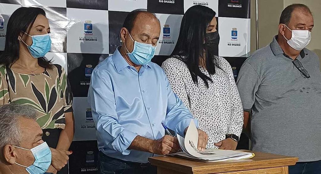 O prefeito Tião Bocalom assinou na manhã desta terça-feira (8) durante solenidade no auditório da sede da prefeitura de Rio Branco o contrato emergencial com a empresa Rico Transportes. A concessionária vai começar a operar inicialmente com 51 ônibus a partir da próxima sexta-feira no lugar da Viação Floresta, que deixou de circular na capital.