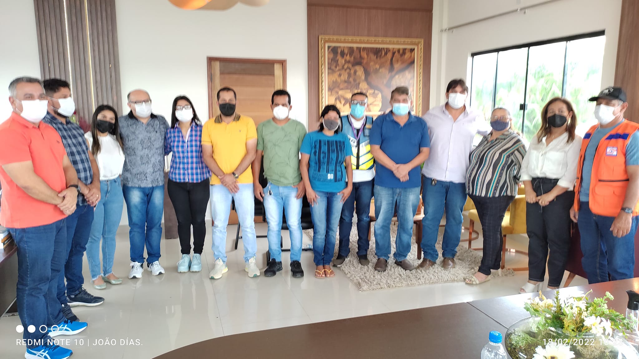 Na manhã desta sexta-feira (18), foi realizada uma reunião no Gabinete do Prefeito em exercício, Henrique Afonso, estiveram presentes também os vereadores Franciney Freitas (PP), João Keleu (PP), Zaldo Mototaxi (PROS) e Márcio da Farinha (PSDB), a senhora Socorro Queiroz, representante dos sem tetos, Denir Secretaria de Agricultura, Lima da Defesa Civil e a senhora Rosa, Secretaria Adjunta da Ação social e demais secretários e representantes da Sociedade Civil.