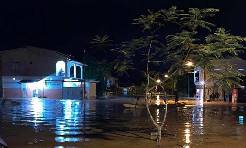 Imagens enviadas por moradores da cidade mostram que alguns bairros da cidade já foram atingidos pelas águas, obrigando as pessoas a deixarem suas casas.