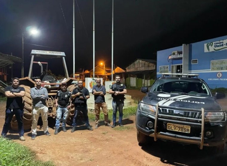Policiais civis e militares dos municípios de Acrelândia (AC) e Plácido de Castro com o apoio da Polícia Nacional da Bolívia recuperaram um trator da marca Massey Fergusson, modelo 630 que havia sido roubado dentro de uma propriedade rural no município Plácido de Castro e levando para a cidade de Evo Morales, na Bolívia.