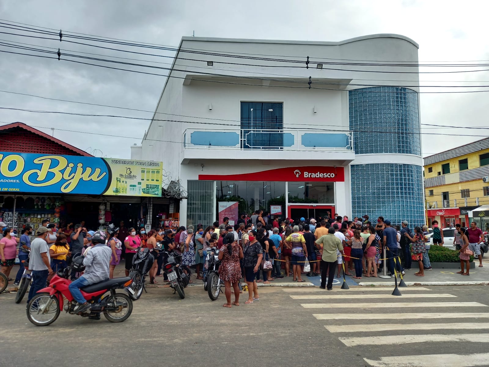 Aglomeração, filas e desrespeito as medidas sanitárias são cenas vistas diariamente na porta da agência do banco Bradesco, localizado na Avenida Rodrigues Alves, centro de Cruzeiro do Sul (AC). Nem a chuva ou o sol forte são capazes de dispersar as pessoas.