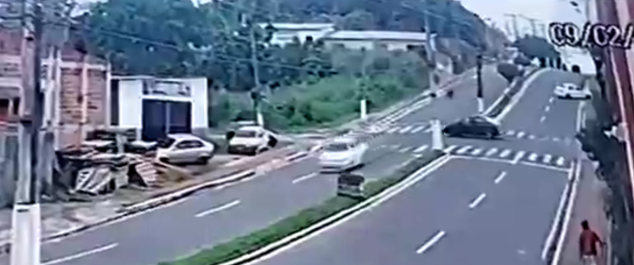 Vídeo mostra momento em que carro cruza avenida e provoca acidente em avenida de Cruzeiro do Sul