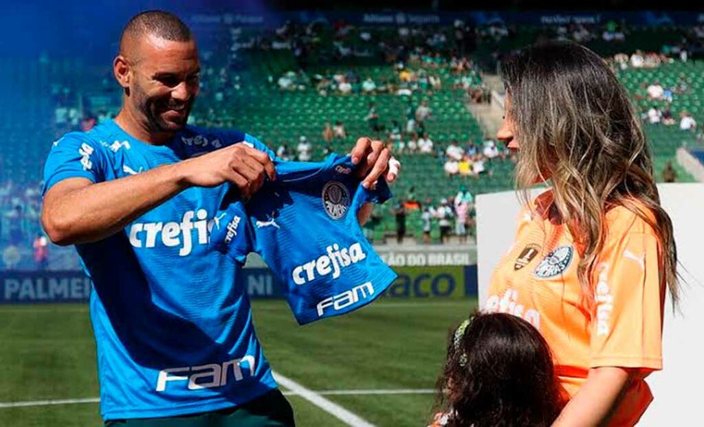 Antes do aquecimento, um momento família do goleiro acreano Weverton foi compartilhado com os torcedores do Palmeiras que foram ao Allianz Parque para acompanhar a partida contra o Guarani, neste domingo, pelo Campeonato Paulista.