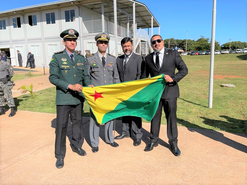 O representante do governo do Acre em Brasília, Ricardo França, participou, nesta quinta-feira, 24, na capital federal, da posse do novo diretor da Força Nacional de Segurança Pública, coronel José Américo de Souza Gaia, da Polícia Militar do Acre. Gaia é o primeiro acreano e integrante da Região Norte do país a assumir a direção do órgão. A posse se deu no Batalhão Escola de Pronto Emprego (Bepe), instalado no Gama, região administrativa do Distrito Federal.