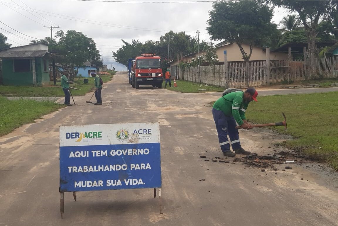O governo do Acre, por meio do Departamento de Estradas de Rodagem (Deracre), realiza operação tapa-buraco nos pontos críticos da estrada AC-407, próximo à Comunidade São Pedro, em Rodrigues Alves.