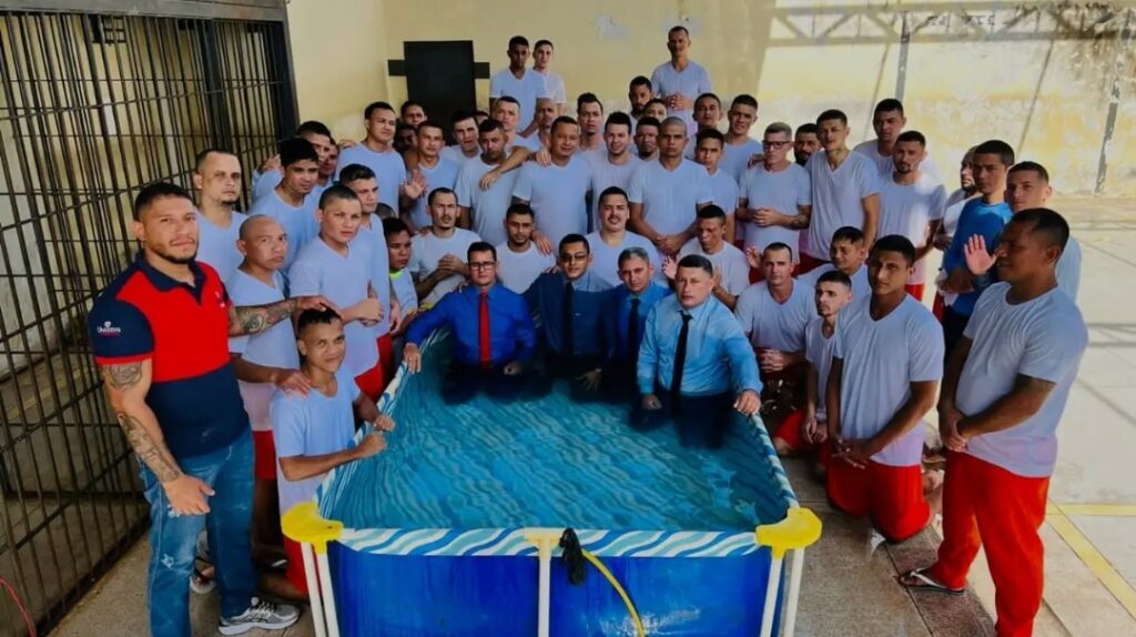 Uma piscina foi improvisada do pátio da unidade prisional. A direção do presídio, policiais penais e outros presos já batizados anteriormente prestigiaram o momento. Em meio aos louvores, muitos choraram e pedirão perdão pelos crimes cometidos.