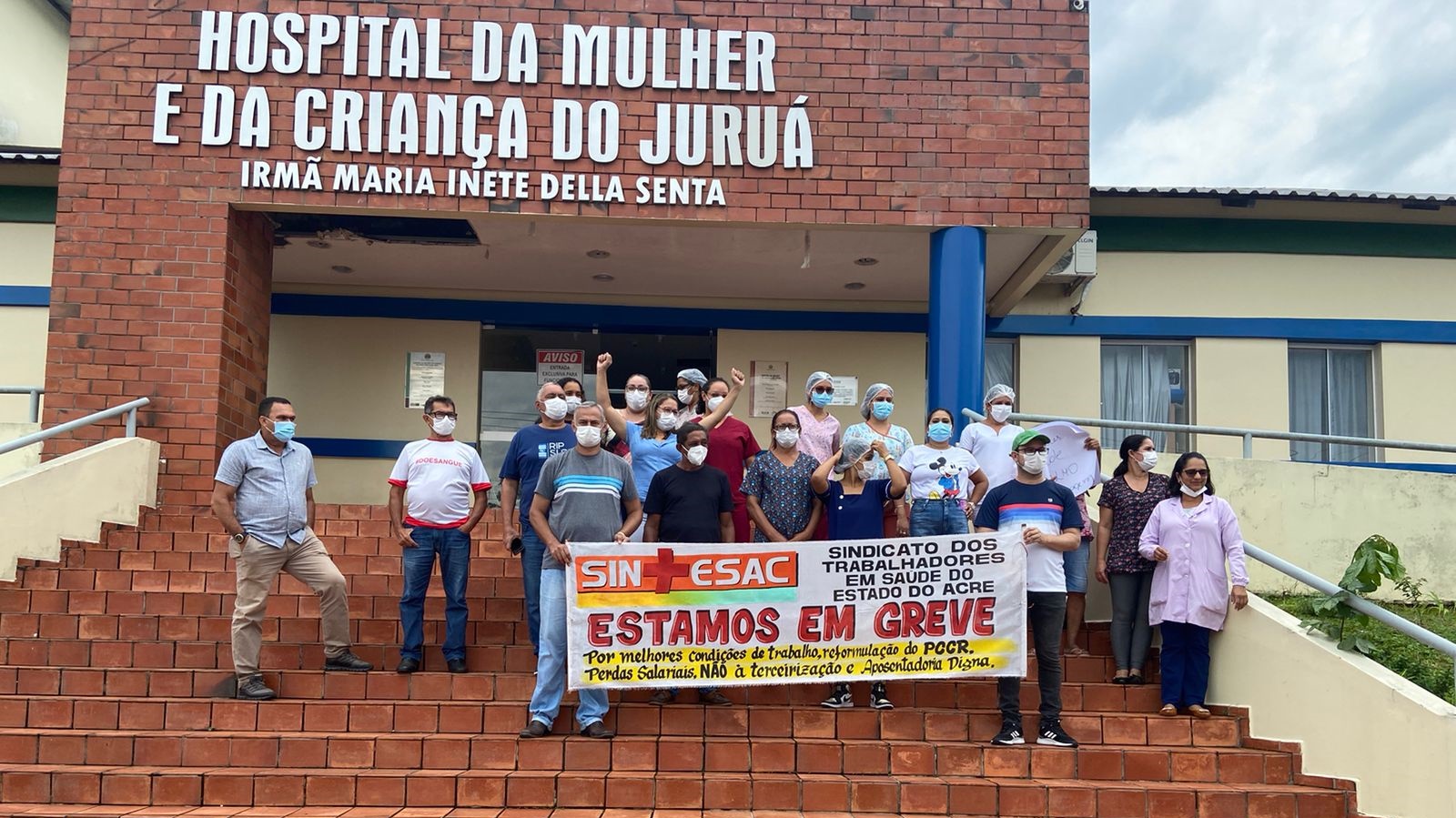 BEATRIZ SANTOS, DO JURUÁ EM TEMPO – Na manhã desta terça-feira (08), o Sindicato dos Trabalhadores em Saúde do Estado do Acre (SINTESAC), se reuniu em frente ao Hospital da Mulher e da Criança do Juruá Irmã Maria Inete Della Senta, em Cruzeiro do Sul, para anunciar que estão em greve por tempo indeterminado.
