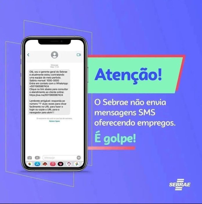 “O Sebrae não cria esse tipo de ‘oportunidade’. É golpe. Não clique em nenhum link e não adicione o número aos seus contatos”, disse em nota.