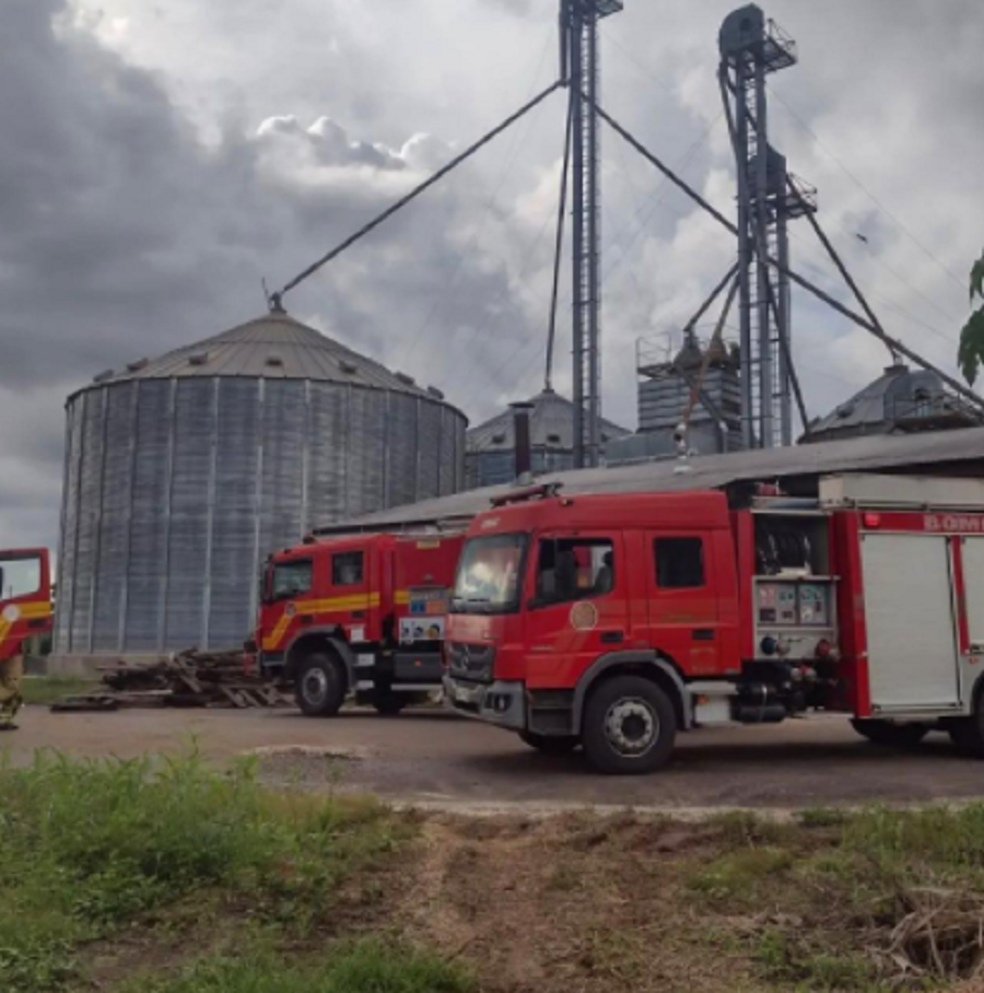 Ao chegar ao local, as guarnições observaram que havia fumaça saindo de uma abertura que estava com princípio de incêndio confinado em um cilindro de secagem de grãos a 12 metros de altura.