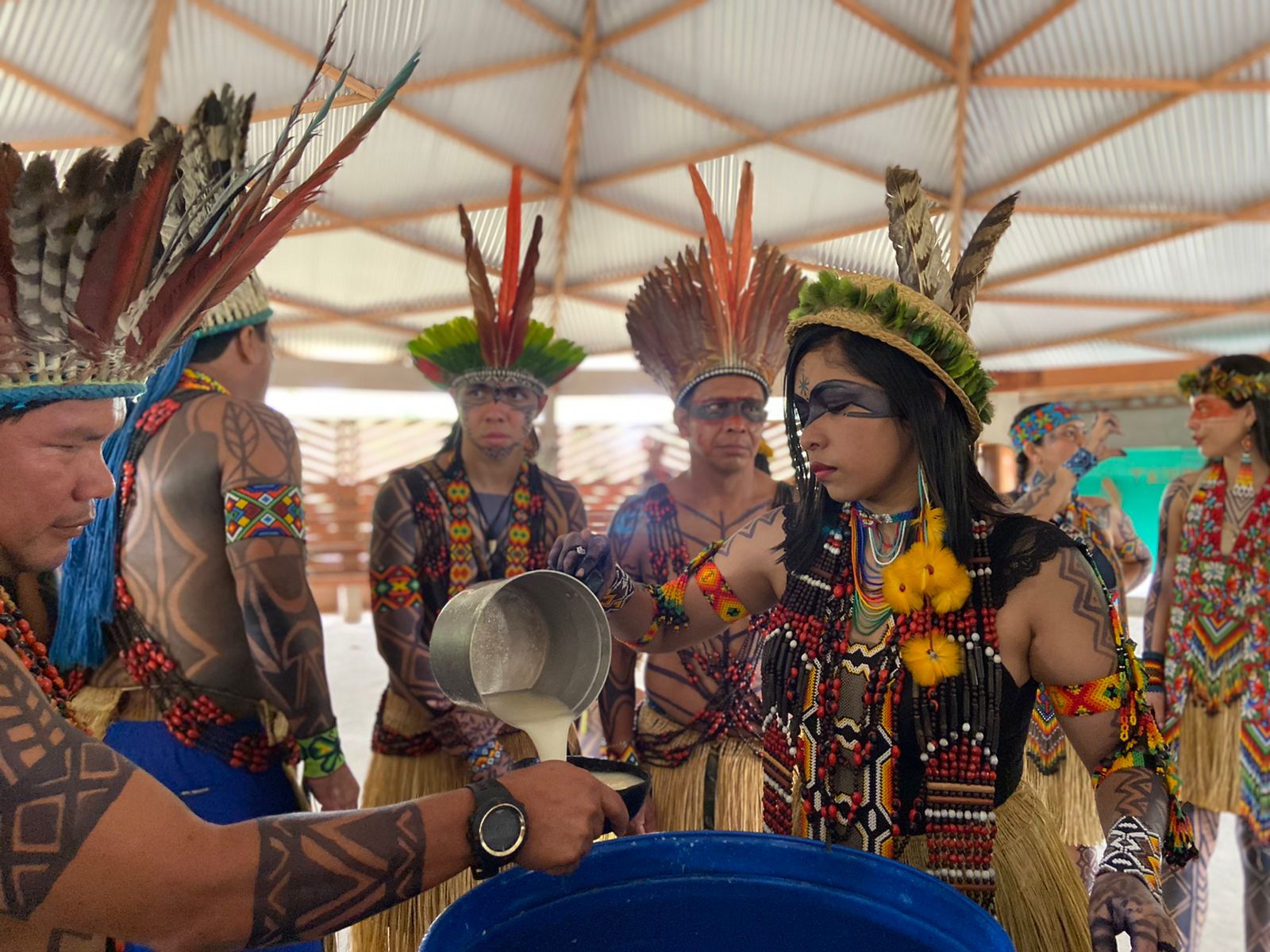 “Trago aqui meu povo com alegria para celebrar a vida e a natureza. Agradecer a Deus a dádiva da vida, de poder estarmos aqui com saúde depois de tudo que passamos. Estamos aqui para comemorar a vida neste dia tão importante, para apresentar a nossa cultura”, disse o cacique Joel Puyanawa.
