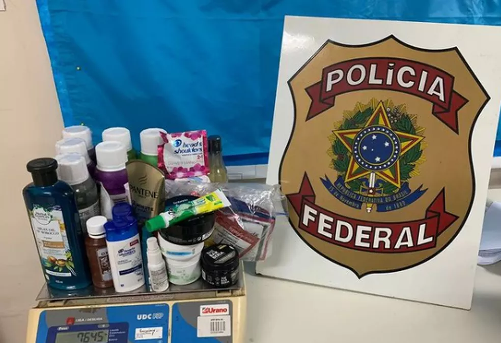 Durante o procedimento, foi feita uma vistoria na bagagem dele e foram encontradas várias embalagens de produtos de higiene pessoal o que acabou levantando suspeitas e os policiais submeteram os objetos a testes e acabou sendo identificada a droga.