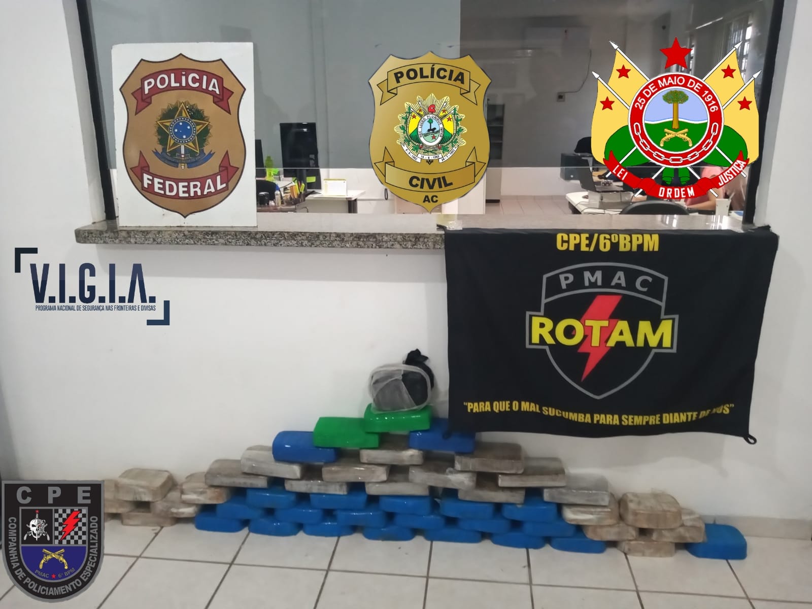Uma ação conjunta entre Polícia Militar, Civil e Federal, resultou na apreensão de 47,95 quilos de drogas, na rodovia AC-405, que dá acesso ao Aeroporto Internacional de Cruzeiro do Sul.