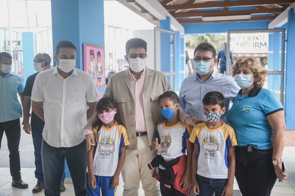 Na oportunidade, uma equipe da Secretaria de Saúde do Acre (Sesacre) estava realizando a vacinação dos alunos, dos pais e da comunidade em geral, tanto da covid-19 quanto da influenza. O governador estava acompanhado do secretário de Educação, Cultura e Esportes, Aberson Carvalho, e da secretária adjunta de Saúde, Moana Araújo.