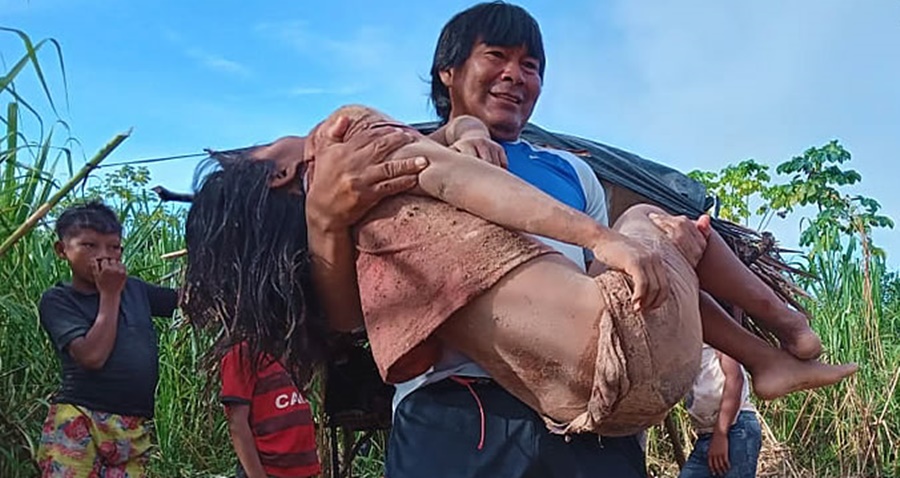 Imagens que circulam nas redes sociais, onde mostra um indígena segurando a criança no colo, seria o cacique da aldeia Morada Nova. A filha do casal foi socorrida com vida ao hospital da cidade.
