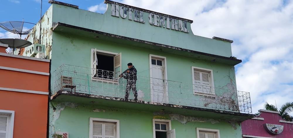 “O rapaz que trouxe a moça para ficar com o hóspede disse que ela ligou para ele contando que ele não estava deixando ela sair. Então, esse homem, que é mototáxi, veio aqui avisou para o rapaz da recepção, que me chamou. Foi então que me contaram que ele estava com a moça presa no banheiro e com uma arma. Ele não tinha diálogo nenhum, acredito que tenha surtado. Nisso, já tinham chamado a polícia, que agiu com sabedoria e conseguiu controlar a situação”, contou.