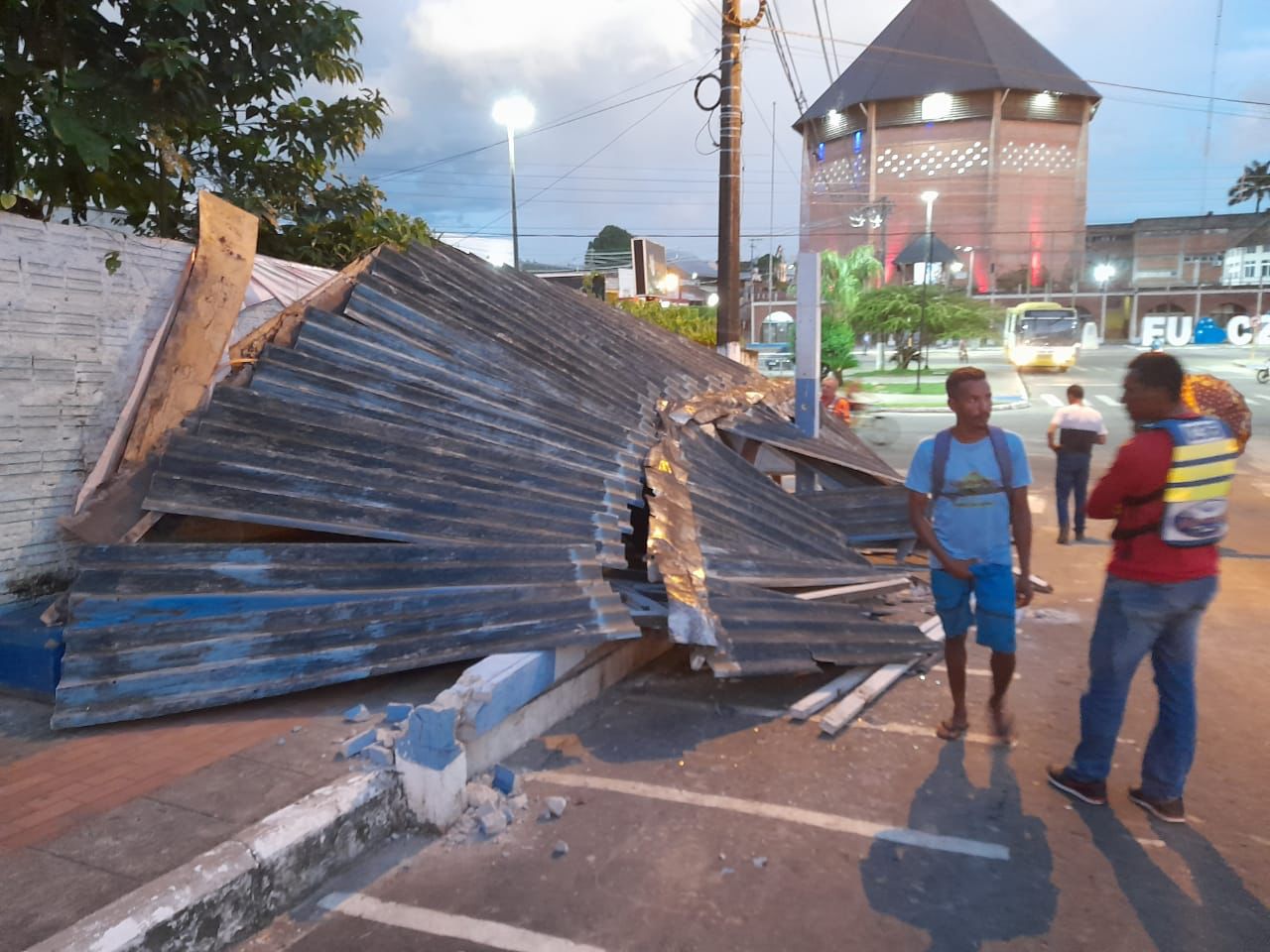 Parada de mototaxi fica destruída em Cruzeiro do Sul após ônibus perder o controle e bater em estrutura