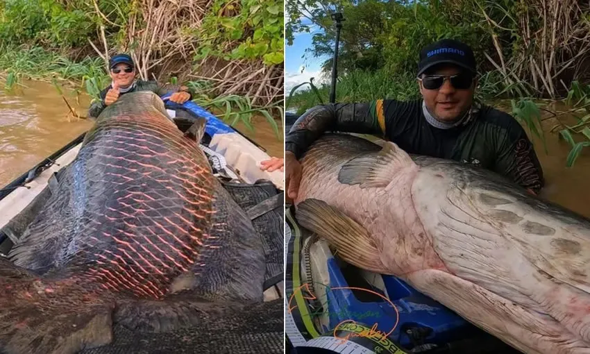 Anderson contou sobre o momento que eles encontraram o peixe e o misto de sensações durante a batalha com o pirarucu no Rio Madeira. Ele pesca desde criança.