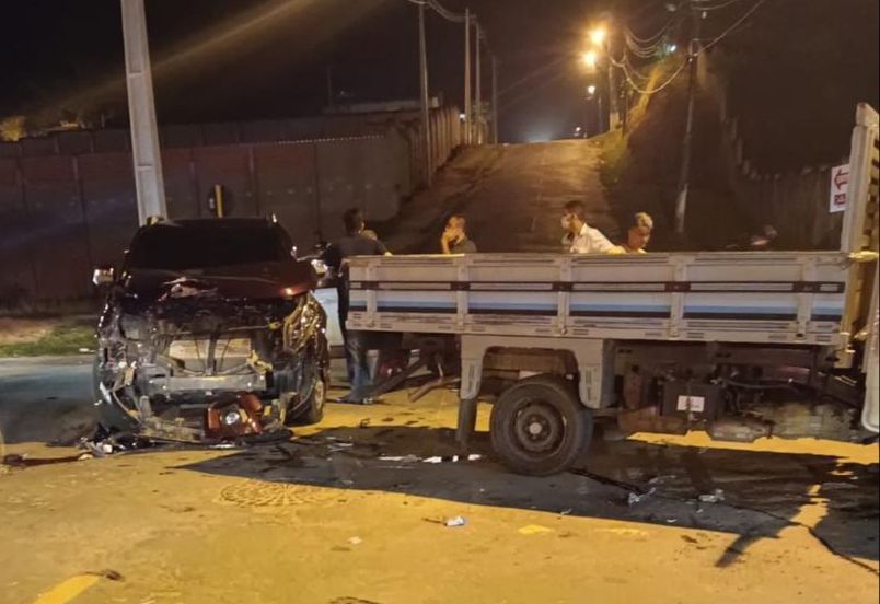 Um VUC (Pequeno Caminhão) e uma caminhonete colidiram em um cruzamento na Av. Copacabana, próximo a Cristal Express, na noite desta última sexta-feira (22), em Cruzeiro do Sul. Com o impacto da colisão, o pequeno caminhão perdeu o controle da direção e o veículo acabou virando.