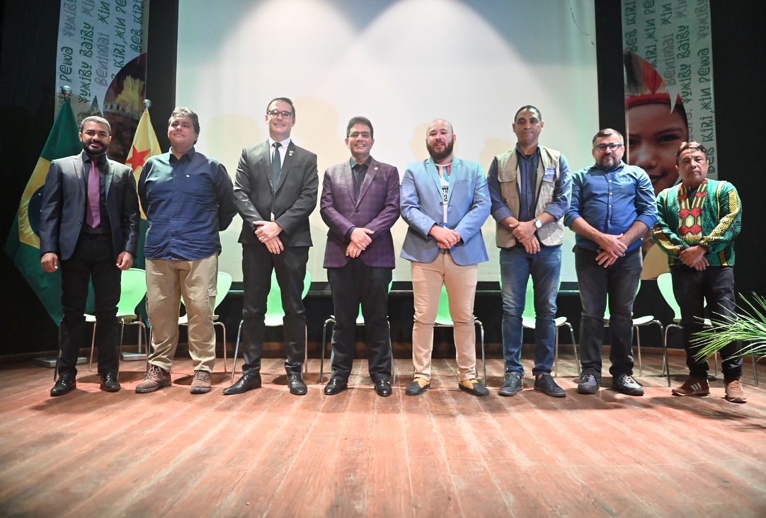 O governador do Acre Gladson Cameli, o representante dos povos indígenas, Manoel Maná, o representante da Agência Brasileira de Promoção Internacional do Turismo (Embratur), Gentil Venâncio, estiveram presentes na abertura.