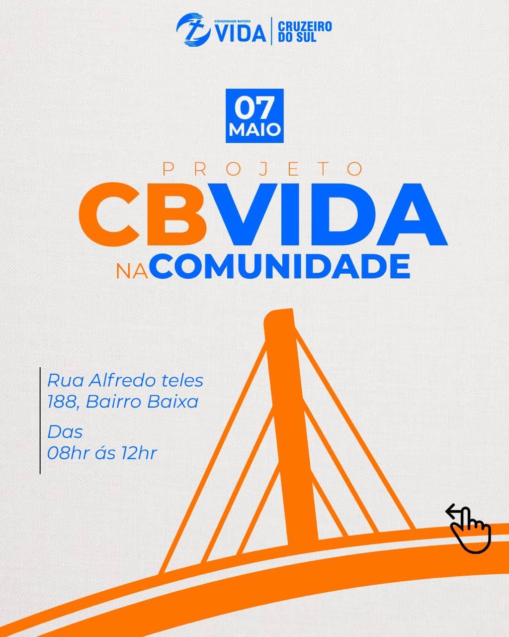 A Igreja Comunidade Batista Vida, em Cruzeiro do Sul, realizará neste sábado (07), das 8h às 12h, um projeto social para a comunidade do bairro da Baixa. Os atendimentos prestados serão nas áreas de: saúde, jurídico, psicológico, regularização do bolsa família, beleza feminina, corte de cabelo masculino e feminino e momento de recriação para as crianças.