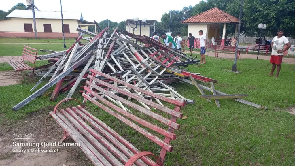 Moradores da Comunidade dos Virgíneos, no município de Mâncio Lima, derrubaram um dos equipamentos da praça local alegando que a estrutura de madeira colocava em risco a segurança das crianças que brincam no local. O fato aconteceu nesta quinta-feira (16).