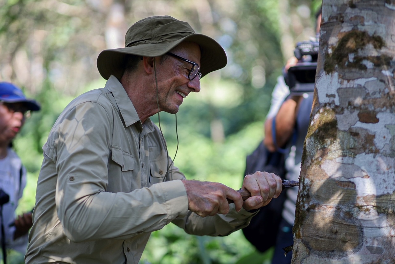 Após conhecerem na prática como se dá a extração do látex, os representantes do Reino Unido e Alemanha estiveram visitando a Cooperativa Central de Comercialização Extrativista do Acre (Cooperacre), onde puderam conhecer todas as etapas de beneficiamento, processamento e comercialização da castanha do Brasil.