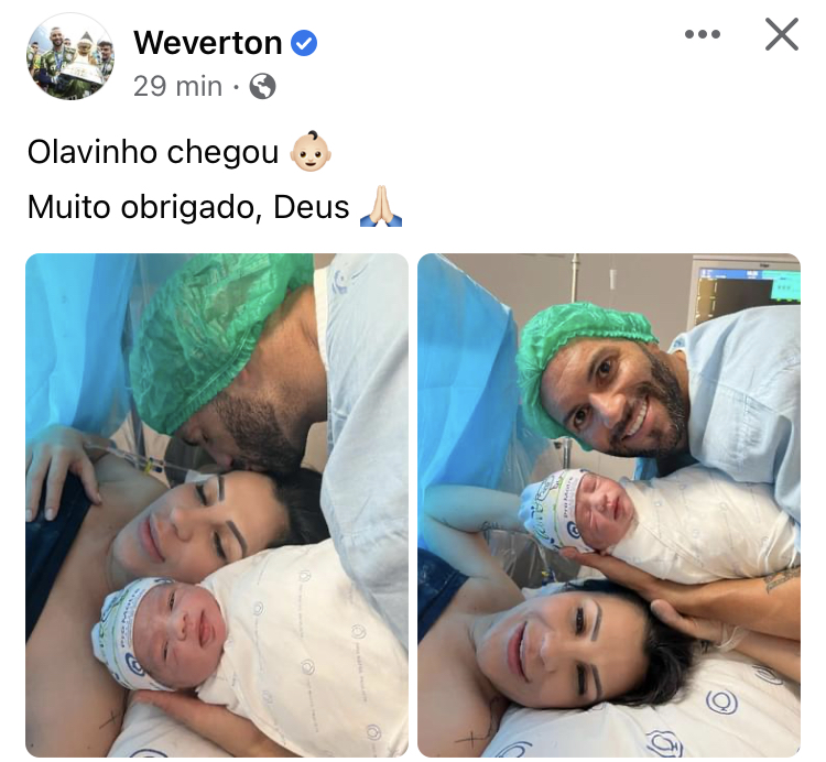 O acreano Weverton, goleiro do Palmeiras e da Seleção Brasileira teve outro motivo para celebrar bastante além das vitórias em campo. O jogador postou em suas redes sociais, nesta terça-feira (14), a foto do nascimento de seu segundo filho, o garoto Olavo.