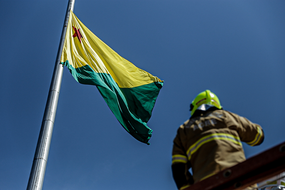 A cerimônia ocorre a partir das 16h e é aberta ao público. O rito da troca do pavilhão será feito por profissionais da Polícia Militar e do Corpo de Bombeiros, e contará com a presença do governador Gladson Cameli e das principais autoridades do estado.