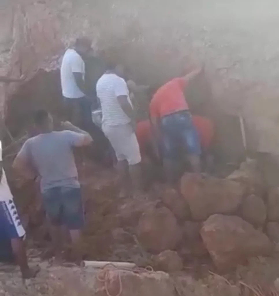 Com o auxílio de um cabo amarrado à viatura, os bombeiros conseguiram retirar o bloco. Eles escavaram usando uma pá e enxada até localizar Lucas, que estava sentado.
