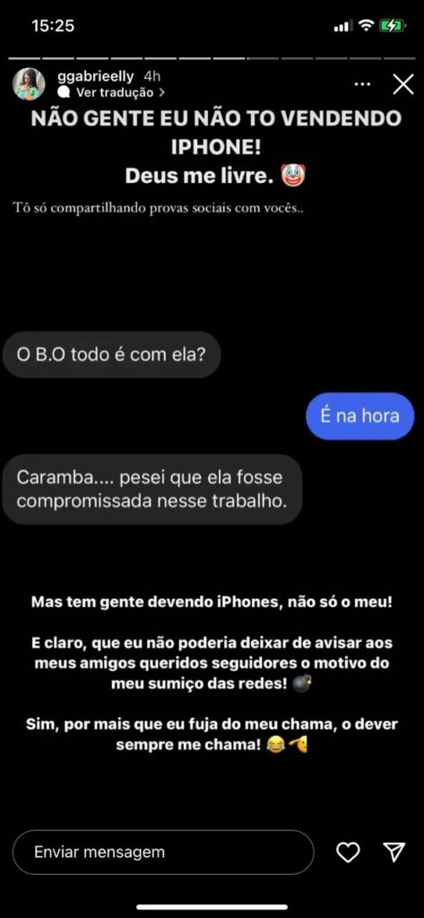 A mulher vendia telefones celulares importados de alto valor, ela recebia o dinheiro e passou a não entregar os aparelhos. Ao mesmo tempo, ostentava uma vida luxuosa nas redes sociais mostrando perfumes importados, viagens e silicone, o que acabou revoltando os clientes que resolveram registrar um boletim de ocorrência.
