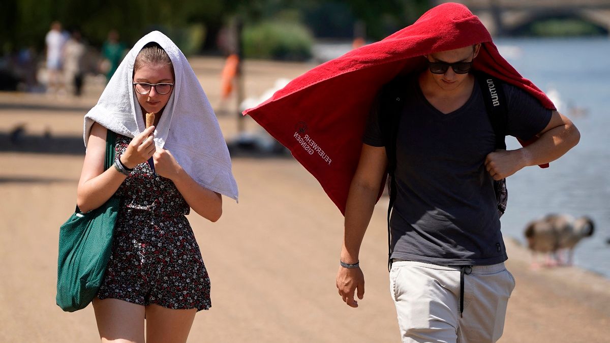 No Reino Unido, o governo emitiu um alerta vermelho de calor extremo para esta segunda-feira (18) e para terça-feira (19).