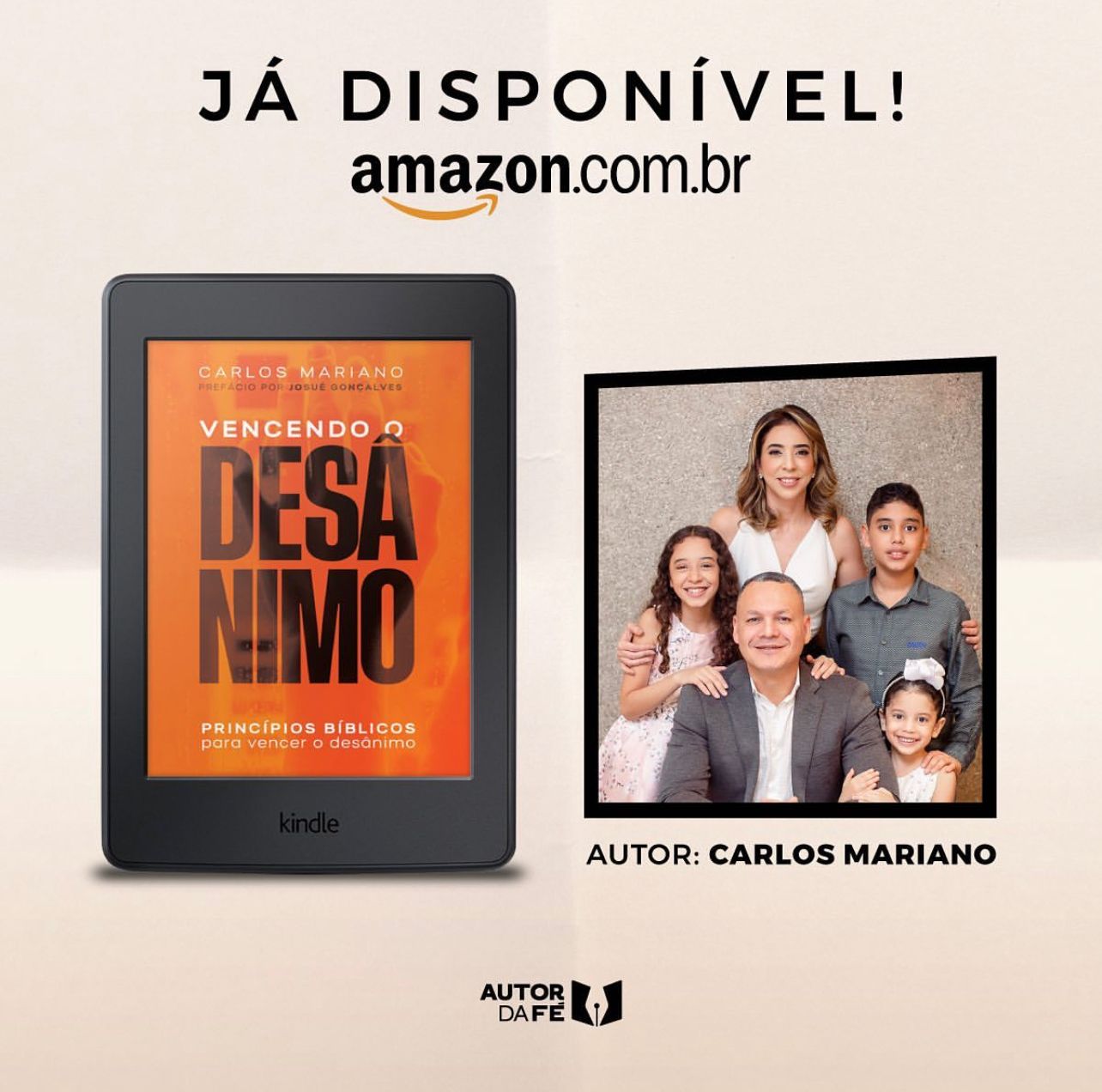 E Deus me deu a honra e o privilégio de inscrever meu primeiro livro cheio de princípios bíblicos, dicas práticas que vai ensinar você a vencer o desânimo”.
